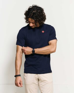 Deze Tee combineert daarom minimalisme en karakter in één tijdloos ontwerp. Bovendien is hij uitgevoerd in een stijlvolle French Navy kleur en gemaakt van hoogwaardig, zacht katoen. Dankzij de soepele touch biedt het shirt ultiem draagcomfort en een atletische pasvorm.
