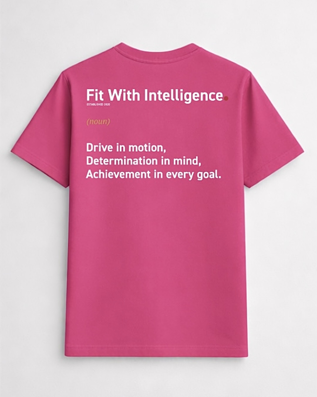 De Tee is uitgevoerd in Fuchsia Rose en bovendien vervaardigd van zacht, ademend materiaal dat meebeweegt met elke rep en elke stap. Daardoor voelt hij licht en comfortabel aan, terwijl hij gebouwd is voor performance. Tegelijkertijd zit het echte statement op de achterkant. Hier zorgt een unieke, onderscheidende print ervoor dat discipline, visie en intentie zichtbaar worden, zonder uitleg.
